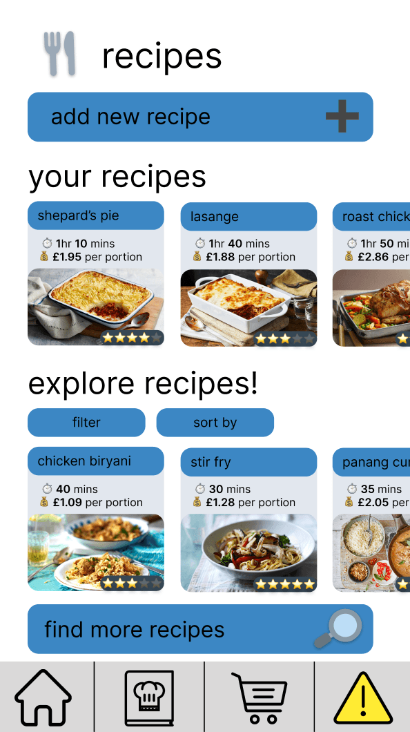 Carers for meal planning and expense tracking